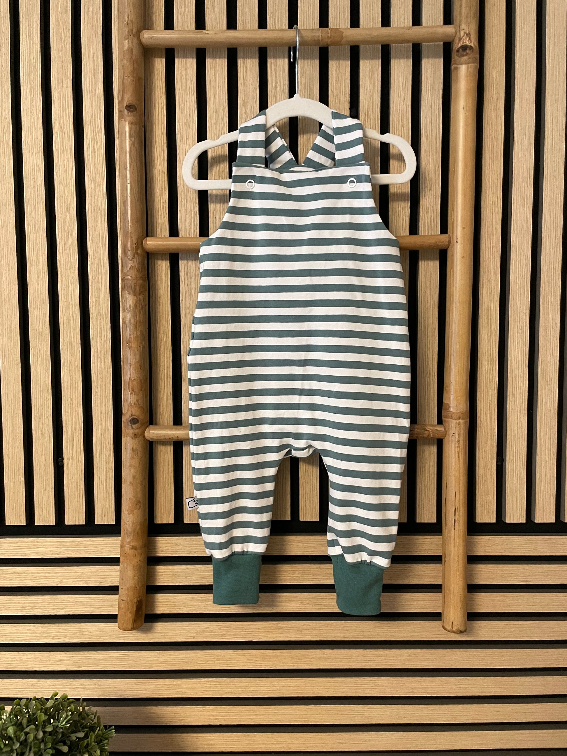 Größe: 86/92 Latzhose " Petrol/weiß gestreift"